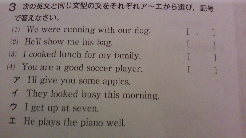 今日冬期講習あったんだけどー、英語の文型??教えてもらったのに全然覚えれんくて、、宿題のやつ答え方分かんなくなっちゃった(T⌓T) 誰か分かる人いる,?&覚え方とか、、