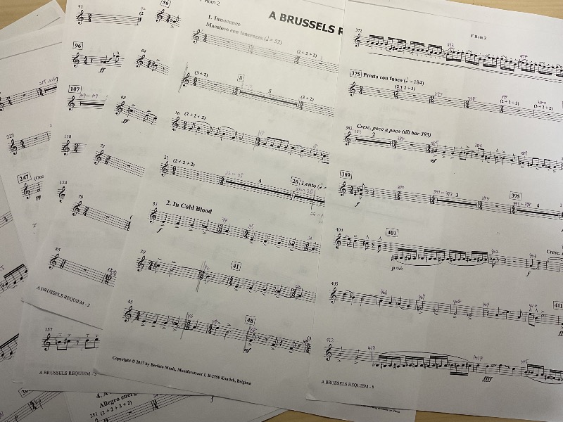ありがとう頑張る! @あやと ブリュッセルレクイエムって曲なんだけどめっちゃむずい笑 でもクラは連符大変だし、どっちもどっちだよねー、、