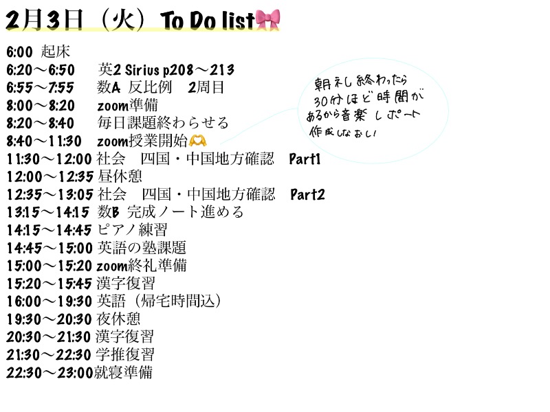 明日のToDolist作成💘 今日の分取り返すため 明日多めですぅー